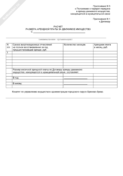 - 795Расчет размера арендной платы за движимое имущество (приложение к договору аренды движимого имущества, находящегося в муниципальной казне города Орехово-Зуево Московской области)