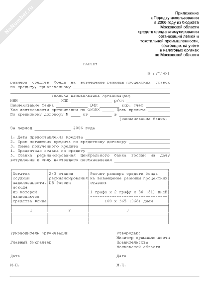 - 784Расчет размера компенсации на возмещение разницы процентных ставок по кредиту, полученному организациями легкой и текстильной промышленности, состоящими на учете в налоговых органах по Московской области