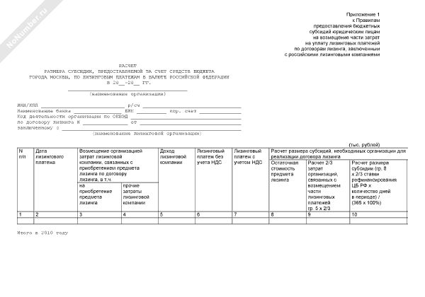 - 788Расчет размера субсидии, предоставляемой за счет средств бюджета города Москвы, по лизинговым платежам в валюте Российской Федерации, по договорам лизинга, заключенным с российскими лизинговыми компаниями