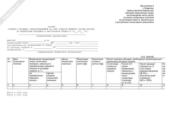 - 789Расчет размера субсидии, предоставляемой за счет средств бюджета города Москвы, по лизинговым платежам в иностранной валюте, по договорам лизинга, заключенным с российскими лизинговыми компаниями