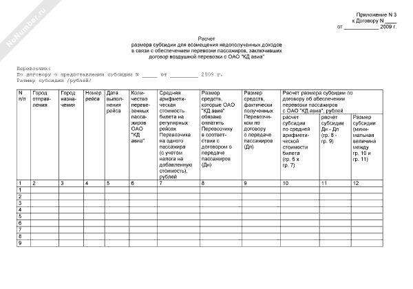 - 785Расчет размера субсидии для возмещения недополученных доходов в связи с обеспечением перевозки пассажиров, заключивших договор воздушной перевозки с ОАО «КД авиа» (приложение к договору о предоставлении субсидий из федерального бюджета авиационным перевозчикам для возмещения недополученных ими доходов в связи с обеспечением перевозки пассажиров)
