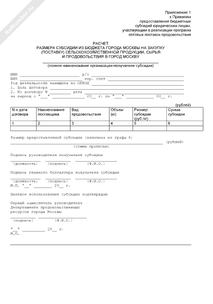 - 786Расчет размера субсидии из бюджета города Москвы юридическому лицу, участвующему в реализации программ оптовых поставок продовольствия, на закупку (поставку) сельскохозяйственной продукции, сырья и продовольствия в город Москву