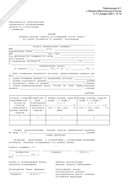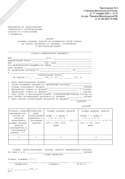 - 799Расчет размера целевых средств на возмещение части затрат на уплату процентов по кредиту, полученному заемщиком по кредитному договору
