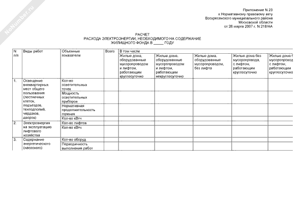 - 858Расчет расхода электроэнергии, необходимого на содержание жилищного фонда Воскресенского муниципального района Московской области
