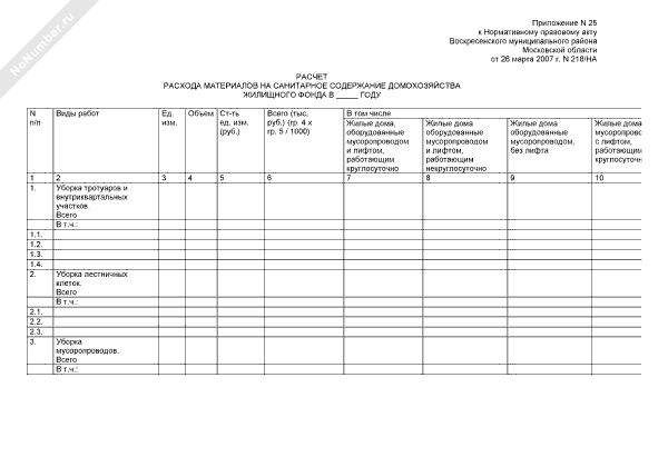 - 857Расчет расхода материалов на санитарное содержание домохозяйства жилищного фонда Воскресенского муниципального района Московской области