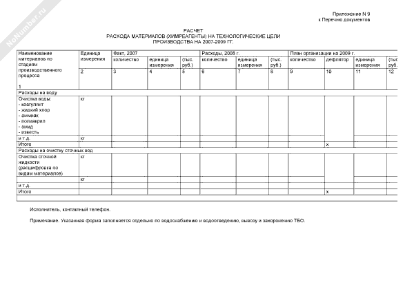 - 860Расчет расхода материалов (химреагенты) на технологические цели производства на 2007-2009 гг. Шатурского муниципального района Московской области
