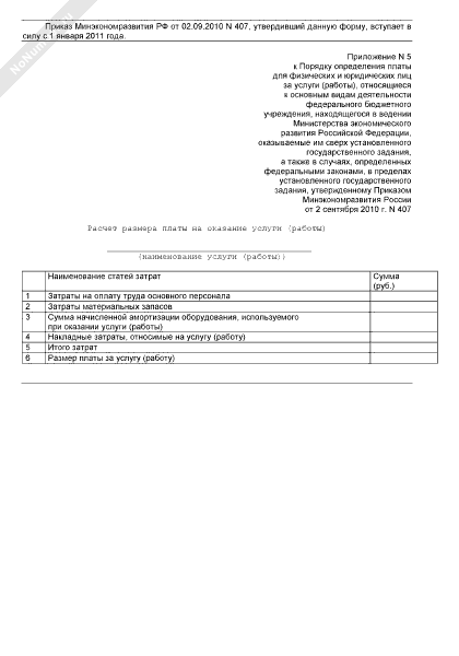 - 852Расчет размера платы на оказание услуги (работы), относящейся к основному виду деятельности федерального бюджетного учреждения, находящегося в ведении Министерства экономического развития Российской Федерации