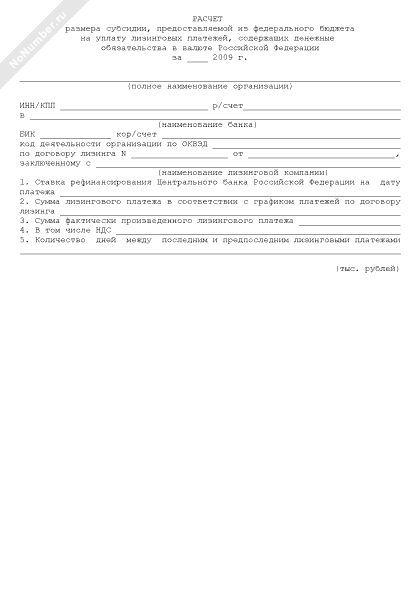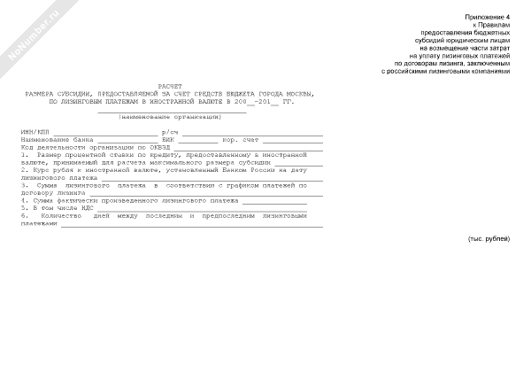 - 850Расчет размера субсидии, предоставляемой за счет средств бюджета города Москвы, по лизинговым платежам в иностранной валюте, по договорам лизинга, заключенным с российскими лизинговыми компаниями (предоставляется ежеквартально не позднее 5-го числа месяца, следующего за отчетным)