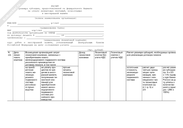 - 841Расчет размера субсидии, предоставляемой из федерального бюджета на уплату лизинговых платежей в валюте Российской Федерации