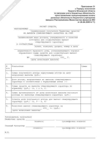 - 961Расчет средств, направляемых получателем бюджетных средств на территории Московской области на выплаты стимулирующего характера за счет доходов, утвержденных в качестве источника для осуществления выплат стимулирующего характера