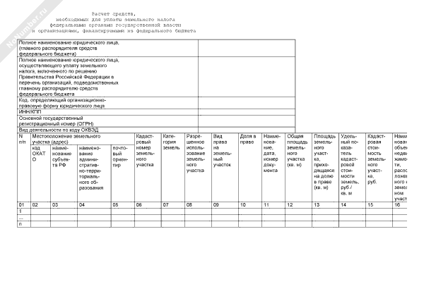- 963Расчет средств, необходимых для уплаты земельного налога федеральными органами государственной власти и организациями, финансируемыми из федерального бюджета. Форма № ФО 1.N