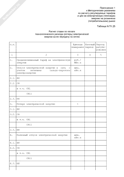 - 968Расчет ставки по оплате технологического расхода (потерь) электрической энергии на ее передачу по сетям (таблица № П1.25)