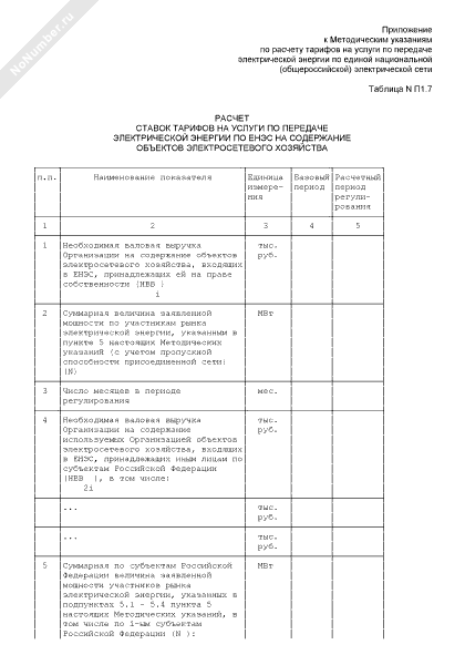 - 970Расчет ставок тарифов на услуги по передаче электрической энергии по ЕНЭС на содержание объектов электросетевого хозяйства