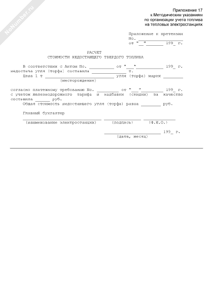 - 976Расчет стоимости недостающего твердого топлива на тепловых электростанциях (приложение к претензии о возмещении стоимости недостающего твердого топлива)