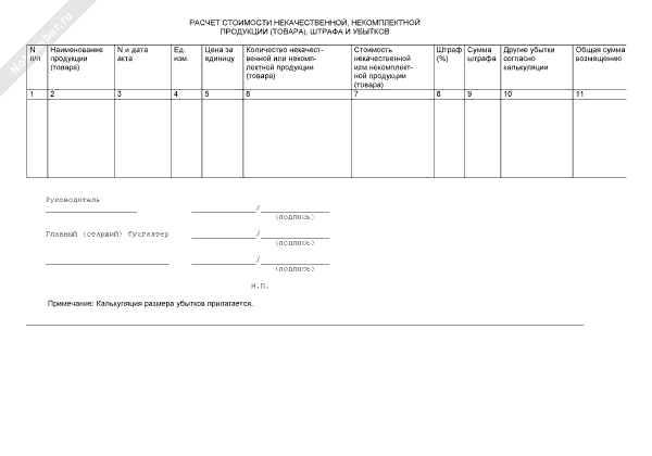 - 975Расчет стоимости некачественной, некомплектной продукции (товаров), штрафа и убытков