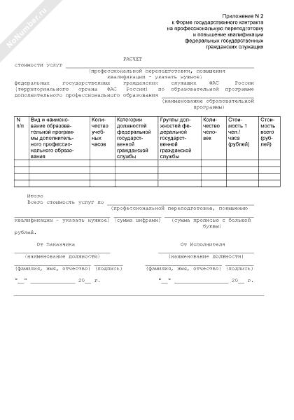 - 977Расчет стоимости услуг профессиональной переподготовки (повышения квалификации) (приложение к форме государственного контракта на профессиональную переподготовку и повышение квалификации федеральных государственных гражданских служащих Федеральной антимонопольной службы и ее территориальных органов)