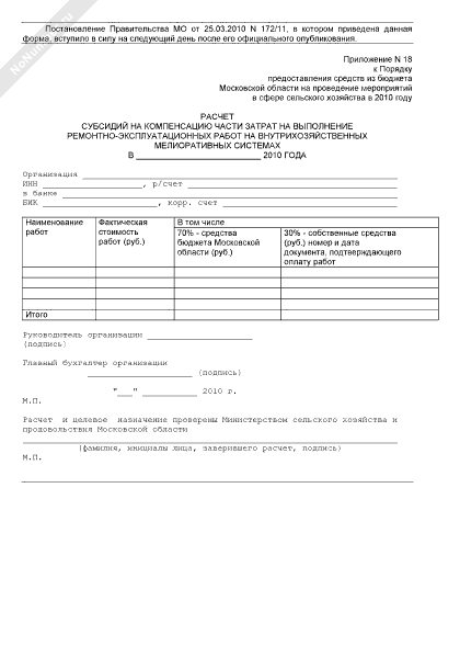 - 1029Расчет субсидий из бюджета Московской области на компенсацию части затрат на выполнение ремонтно-эксплуатационных работ на внутрихозяйственных мелиоративных системах