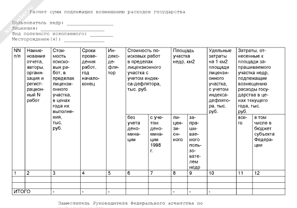 - 1034Расчет сумм подлежащих возмещению расходов государства на поиск и оценку месторождений полезных ископаемых, подготовленный Федеральным агентством по недропользованию