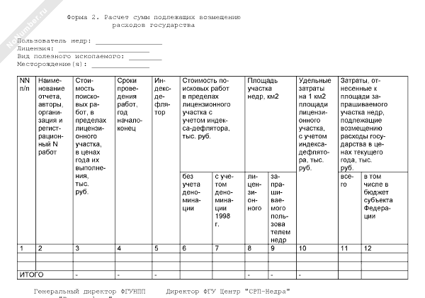 - 1033Расчет сумм подлежащих возмещению расходов государства на поиск и оценку месторождений полезных ископаемых (форма № 2)