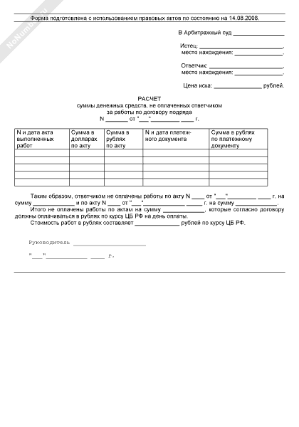 - 1035Расчет суммы денежных средств, не оплаченных ответчиком за работы по договору подряда