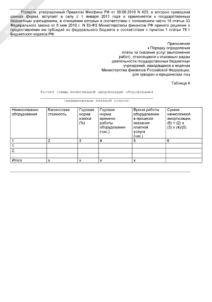- 1040Расчет суммы начисленной амортизации оборудования, используемого при оказании платной услуги