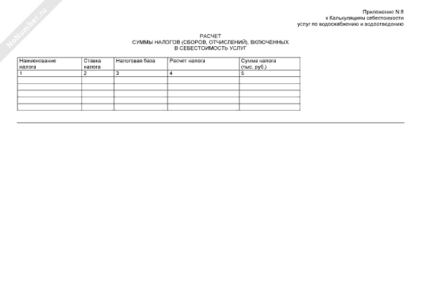 - 1039Расчет суммы налогов (сборов, отчислений), включенных в себестоимость услуг (приложение к калькуляциям себестоимости услуг по водоснабжению и водоотведению в Дмитровском муниципальном районе Московской области)