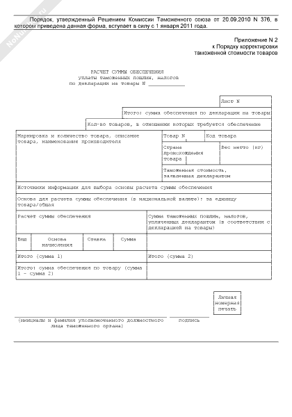 - 1045Расчет суммы обеспечения уплаты таможенных пошлин, налогов по декларации на товары