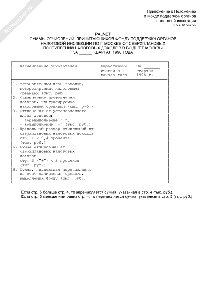 - 1048Расчет суммы отчислений, причитающихся фонду поддержки органов налоговой инспекции по г. Москве от сверхплановых поступлений налоговых доходов в бюджет Москвы