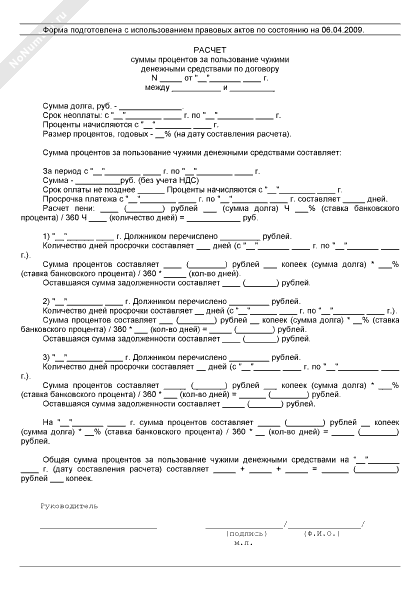 - 1052Расчет суммы процентов за пользование чужими денежными средствами по договору