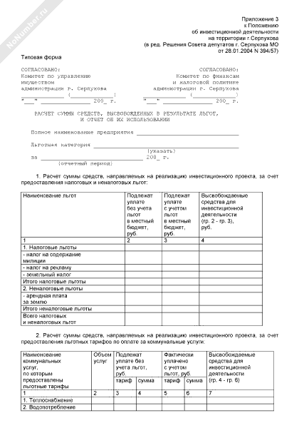 - 1054Расчет суммы средств, высвобожденных в результате льгот в г. Серпухов Московской области, и отчет об их использовании