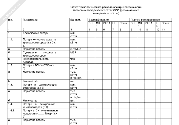 - 1060Расчет технологического расхода электрической энергии (потерь) в электрических сетях энергоснабжающей организации (региональных электрических сетях) (таблица № П1.3)