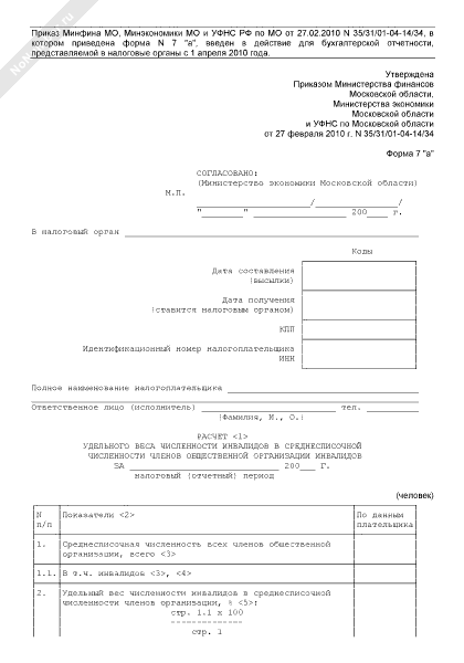 - 1081Расчет удельного веса численности инвалидов в среднесписочной численности членов общественной организации инвалидов в Московской области. Форма № 7 «а»