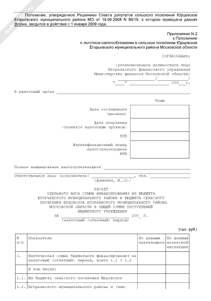 - 1090Расчет удельного веса суммы финансирования из бюджета Егорьевского муниципального района и бюджета сельского поселения Юрцовское Егорьевского муниципального района Московской области в общей сумме поступлений бюджетного учреждения