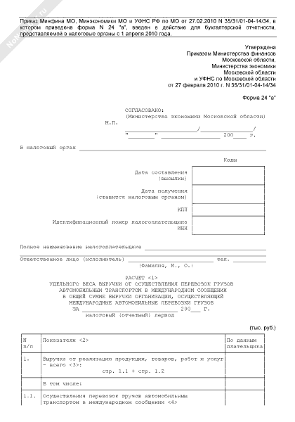 - 1089Расчет удельного веса выручки от осуществления перевозок грузов автомобильным транспортом в международном сообщении в общей сумме выручки организации, осуществляющей международные автомобильные перевозки грузов. Форма № 24 «а»