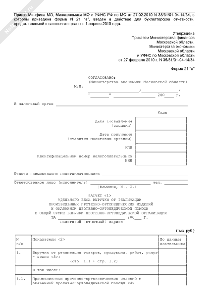 - 1088Расчет удельного веса выручки от реализации произведенных протезно-ортопедических изделий и оказанной протезно-ортопедической помощи в общей сумме выручки протезно-ортопедической организации Московской области. Форма № 21 «а»