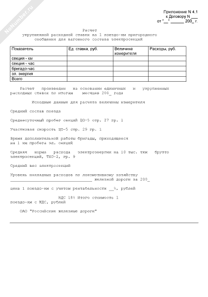 - 1091Расчет укрупненной расходной ставки на 1 поездо-км пригородного сообщения для вагонного состава электросекций (приложение к договору аренды подвижного состава с экипажем)