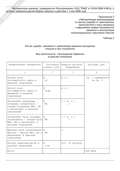 - 1100Расчет ущерба от внеплановых задержек и простоев поездов на участках по видам деятельности. расчет ущерба, связанного с увеличением времени нахождения поездов в пути следования (вид деятельности — пассажирские перевозки в дальнем сообщении)
