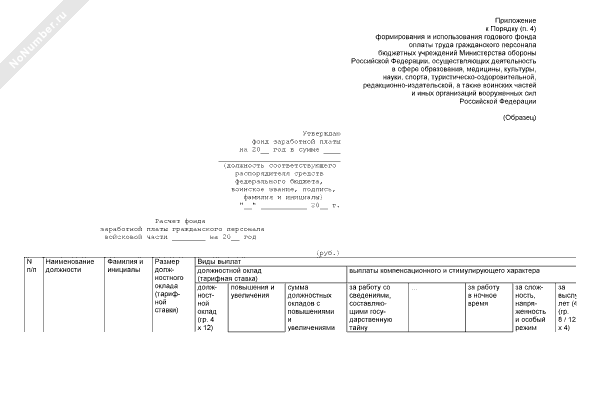 - 1140Расчет фонда заработной платы гражданского персонала войсковой части на год