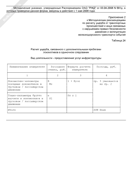 - 1122Расчет ущерба от внеплановых задержек и простоев поездов на участках по видам деятельности. расчет ущерба, связанного с дополнительными пробегами локомотивов в одиночном следовании (вид деятельности — предоставление услуг инфраструктуры)