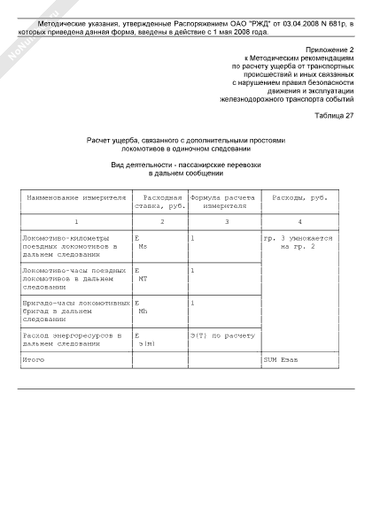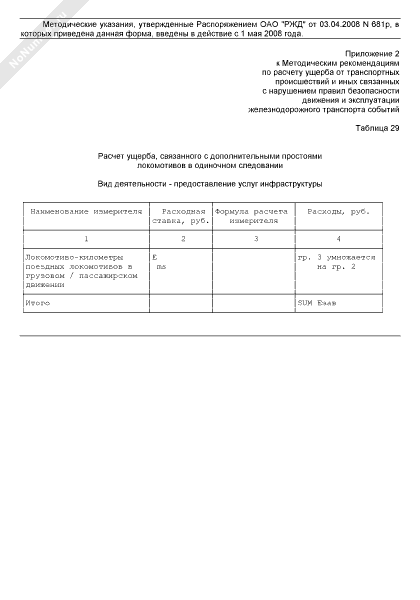 - 1127Расчет ущерба от внеплановых задержек и простоев поездов на участках по видам деятельности. расчет ущерба, связанного с дополнительными простоями локомотивов в одиночном следовании (вид деятельности — предоставление услуг инфраструктуры)