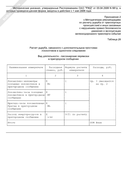 - 1128Расчет ущерба от внеплановых задержек и простоев поездов на участках по видам деятельности. расчет ущерба, связанного с дополнительными простоями локомотивов в одиночном следовании (вид деятельности — предоставление услуг локомотивной тяги)