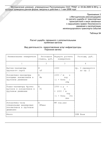- 1134Расчет ущерба от внеплановых задержек и простоев поездов на участках по видам деятельности. расчет ущерба, связанного с дополнительными пробегами вагонов (вид деятельности — предоставление услуг локомотивной тяги. порожние вагоны)