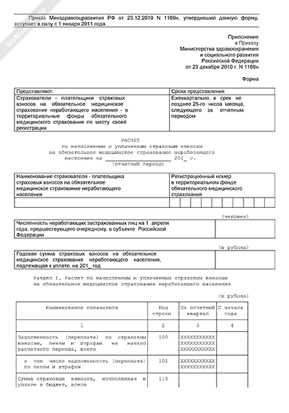 - 1281Расчет по начисленным и уплаченным страховым взносам на обязательное медицинское страхование неработающего населения