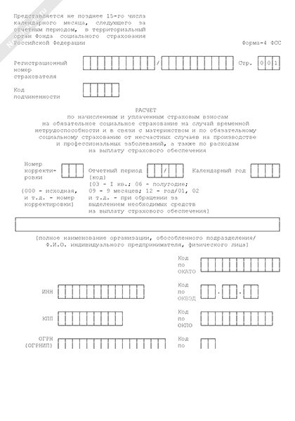 - 1282Расчет по начисленным и уплаченным страховым взносам на обязательное социальное страхование на случай временной нетрудоспособности и в связи с материнством и по обязательному социальному страхованию от несчастных случаев на производстве и профессиональных заболеваний, а также по расходам на выплату страхового обеспечения. Форма № 4 ФСС
