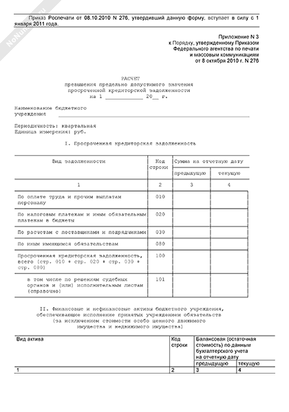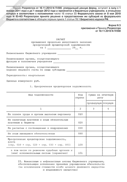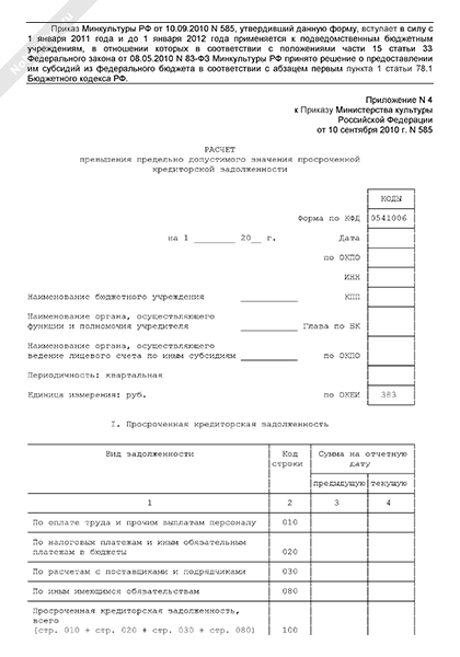 - 1285Расчет превышения предельно допустимого значения просроченной кредиторской задолженности (форма № 3)