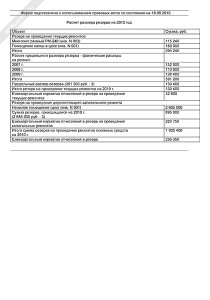 - 1287Расчет размера резерва на год для проведения капитального и текущего ремонта основных средств