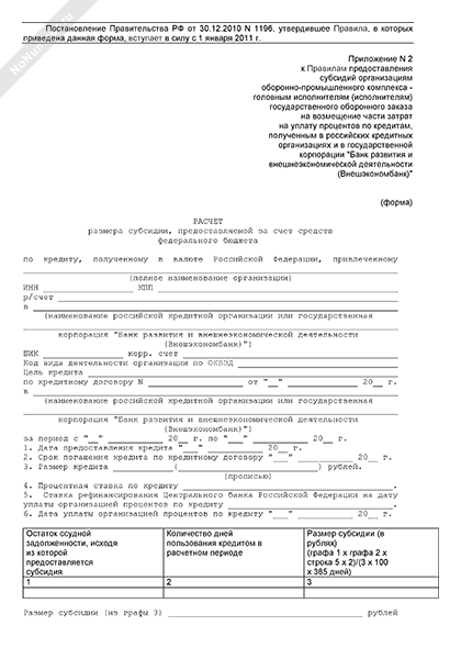- 1290Расчет размера субсидии, предоставляемой за счет средств федерального бюджета по кредиту, полученному в валюте Российской Федерации, привлеченному организацией в российской кредитной организации или государственной корпорации «Банк развития и внешнеэкономической деятельности (Внешэкономбанк)»