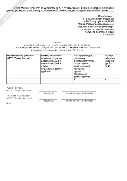 - 1288Расчет размера субсидии ФГУП «Почта России» на компенсацию потерь в доходах от предоставления услуги по доставке и выдаче пенсий, пособий и других социальных выплат на 2010 год