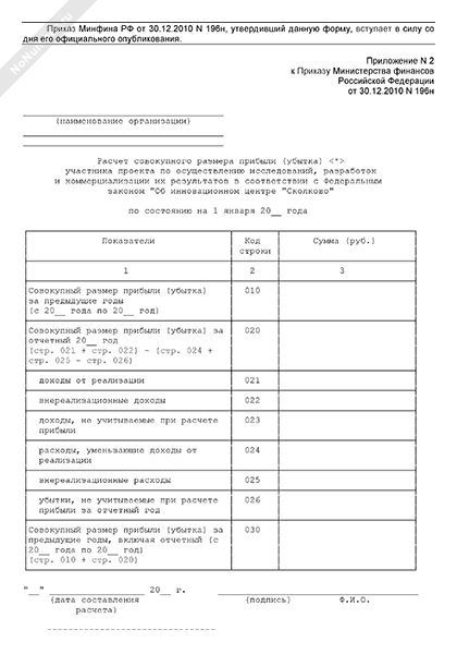 - 1291Расчет совокупного размера прибыли (убытка) участника проекта по осуществлению исследований, разработок и коммерциализации их результатов в соответствии с Федеральным законом «Об инновационном центре «Сколково»