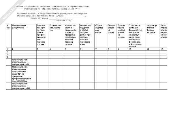 - 1295Расчет трудоемкости обучения специалистов в образовательном учреждении по образовательным программам (приложение к структуре затрат на обучение по договору)